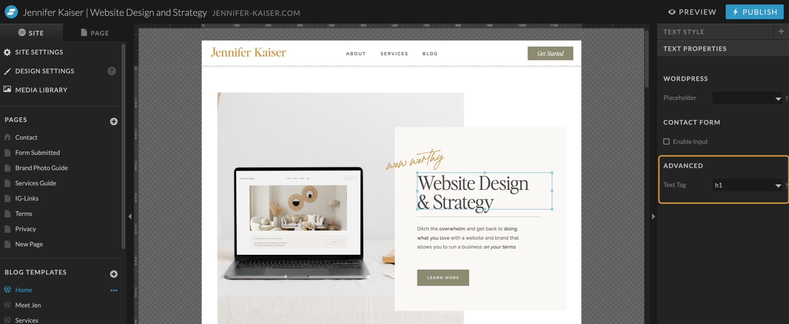 As for the platform you choose, it really depends on the platform you ENJOY maintaining long term. Showit makes updating your website fun and easy. And the same can be said for updating your SEO. Within the platform itself, the SEO settings are easily accessible. And if you publish a blog, you’ll have the power of WordPress and SEO plugins to help as well.