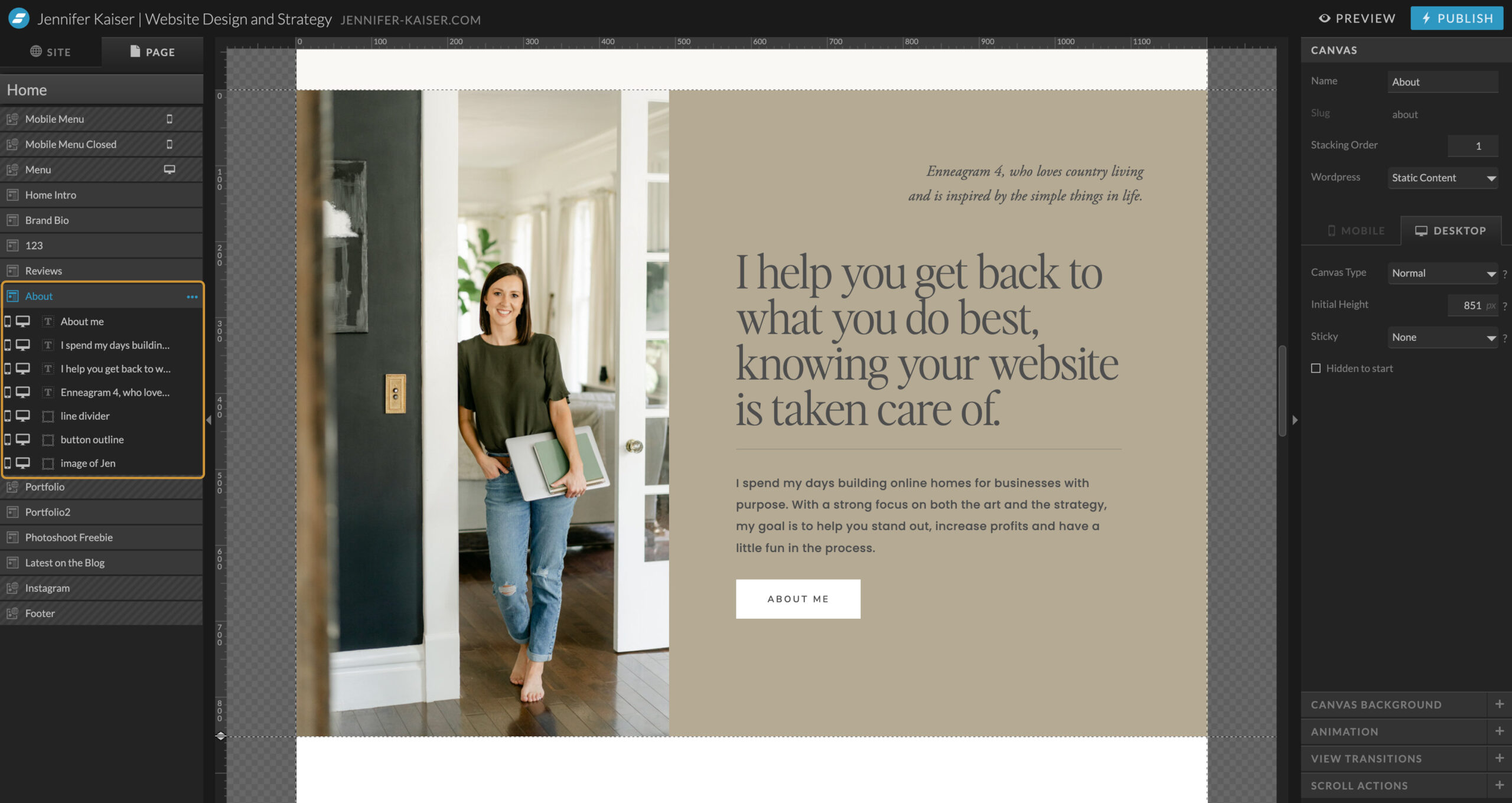 Every item within a page canvas is considered an “element.” From your text, to images, to buttons and links. I like to rename these elements so that I can easily identify what each element is. You’ll find these on the left tab under page.